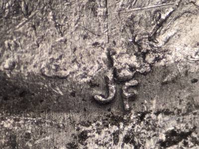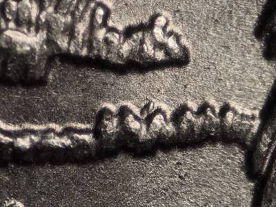 Obverse: Stage A: Die gouge below the E in AMERICA. Stage B: Stage A marker still present. Die chips formed above the designers initials JF.