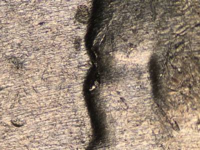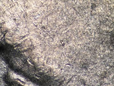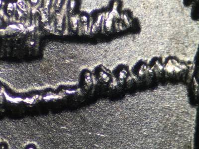 Obverse: Die chips on the lips. Die gouge on the forehead above the eye.