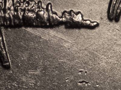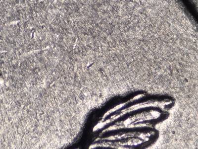 Reverse: Die chips below the eye and on the back of the heron's head. Feeder finger damage below the fourth grass strip. Die gouge above the lowest blades of grass in front of the great blue heron.