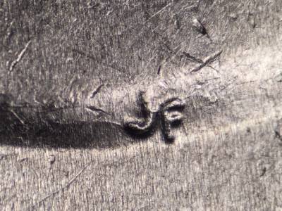 Obverse: Die crack through the designers initials JF. Die gouge inside the O in OF.