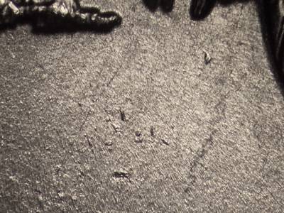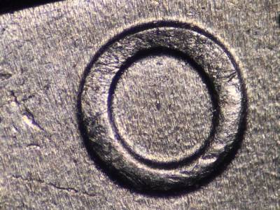 Reverse: Die chips below the eye of the heron. Numerous die gouges below the fourth grass strip in front of the great blue heron.