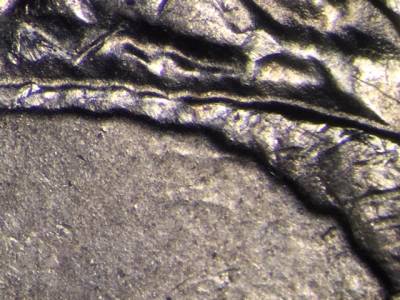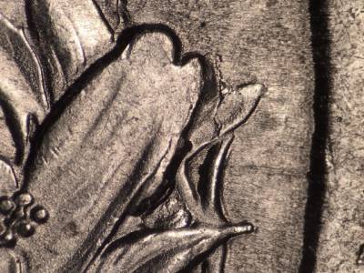 Reverse: Die break in the petals to the left of UNUM. Die chip northwest of the designers initials JFM. Unusual die flow on the bricks below the Y in PARKWAY.