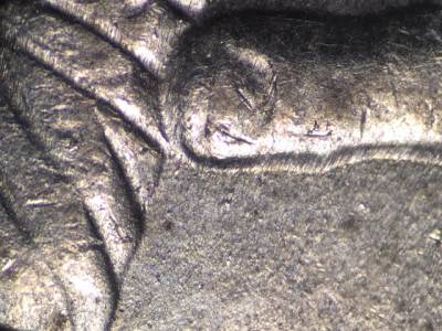 Die Markers: Obverse: Die gouge between the upper T and A in STATES. Reverse: Die gouge below the thumb.