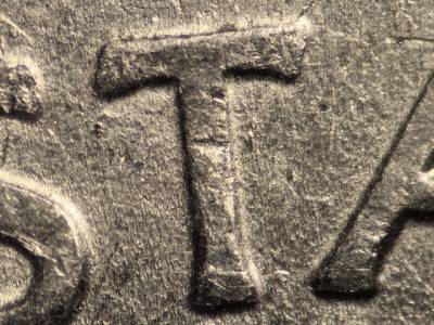 Obverse: Die chip on the base of the bust to the left of the designers' initials JF. Die gouge to the right of the first T in STATES.