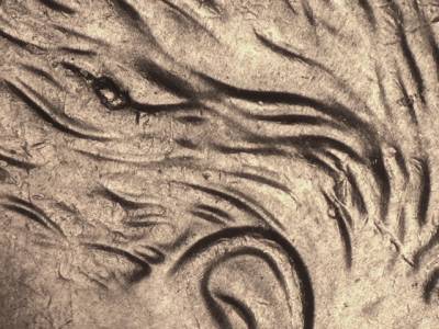 Slight doubling in the fluting to the right of the olive leaves overlapping the torch.