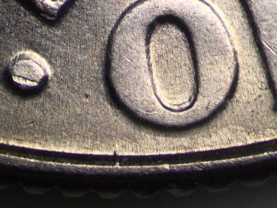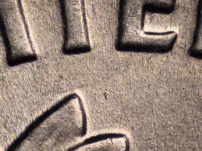 Reverse: Die cracks and chips on the bottom of the torch and in the olive leaves. Die gouge at the rim below the left side of the O in ONE. Die gouge above the olive leaves below the TE in UNITED.