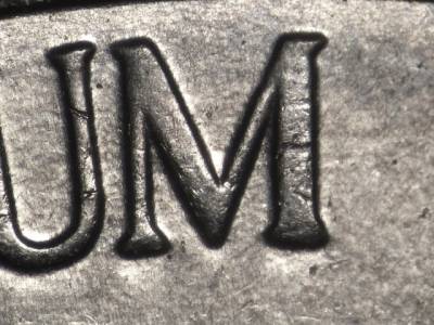 Reverse: Stage A: Small die gouge in the lower left portion of the M in UNUM. Stage B: Stage A marker still present. Die gouge touches the inside of the first U in UNUM. Stage C: Stage B markers still present. Curved die crack formed on the left side of the building. NW-SE die scratch in the lower portion of the S in CENTS.