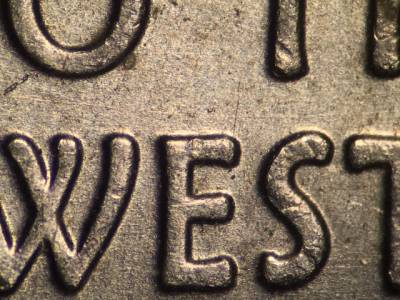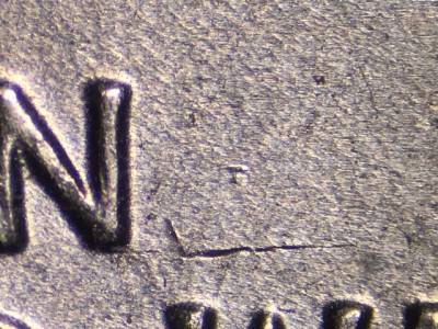 Obverse: Die gouge to the right of the N in IN above the W in WE.