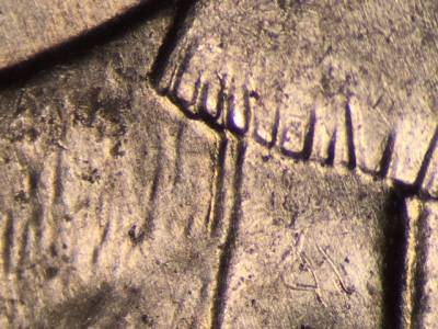 Reverse: Stage A: Short die scratch in the left side of the W in DOORWAY. Stage B: WDDR-004. It is not known whether the Stage A marker is still present. Die gouge above the right side of the O in TO.