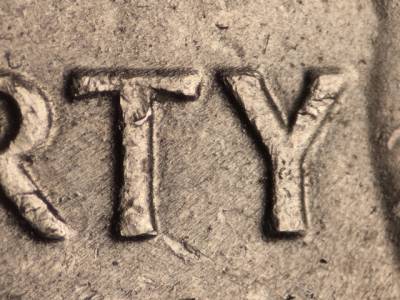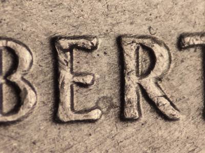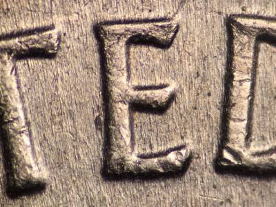 Obverse: Multiple die cracks and chips along the base of the bust. Die gouge to the left of the E in UNITED.
