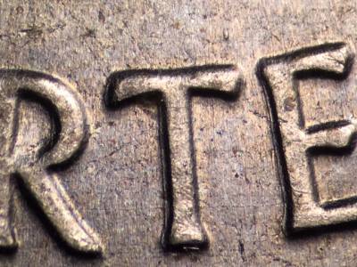 Obverse: Die gouge above the right side of the T in QUARTER.