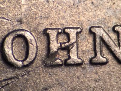 Reverse: Die gouge below the left side of the H in JOHN.