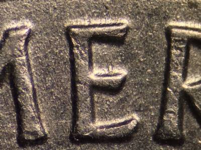 Reverse: Small die gouge between the tower and the branches northeast of it.