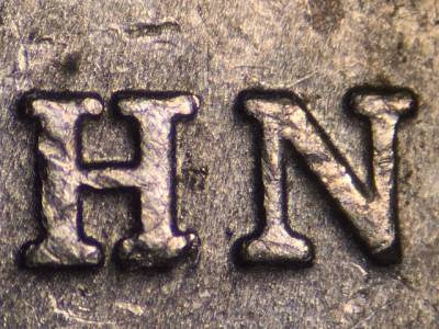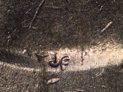 Reverse: Die gouge above the bottom left leg of the N in JOHN. Die gouge above the S in BROWN'S.