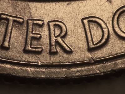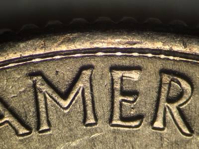 Obverse: Stage A: Heavy die dents at the rim below the E in QUARTER and the D in DOLLAR. Numerous lighter die dents at the rim above the AMER in AMERICA. Several parallel die scratches through the front tip of the bust. Stage B: Stage A markers still present. Die chip formed on the bottom of the bust above the D in DOLLAR.