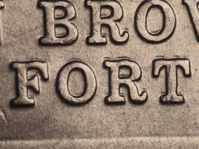 Extra thickness on JOHN BROWN'S FORT (most noticeable on the serifs) and slightly on the window panes. Very similar to SDDR-019, compare doubling and die markers.