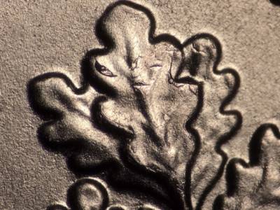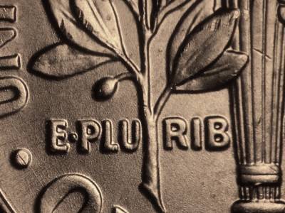 Extra thickness on E PLURIBUS UNUM and the lower olive and oak branches.