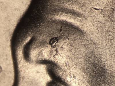 Obverse: Die chips on the the back of the lips, the nose, and the eyebrow. Two die gouges below the E in LIBERTY.