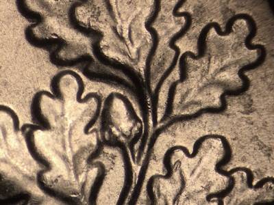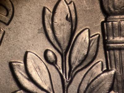Reverse: Die cracks and chips on the bottom and top of the torch and in the olive and oak leaves. Die gouges to the right and below the M in UNUM. Die gouge near the rim above the TE in STATES. Die gouge below the A in STATES. Die gouge below the second T in STATES.
