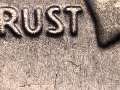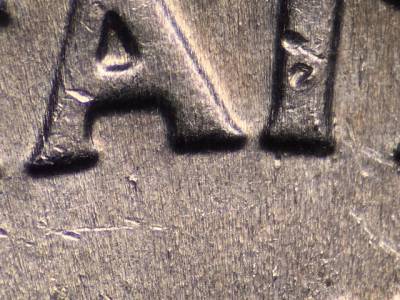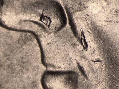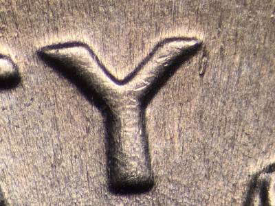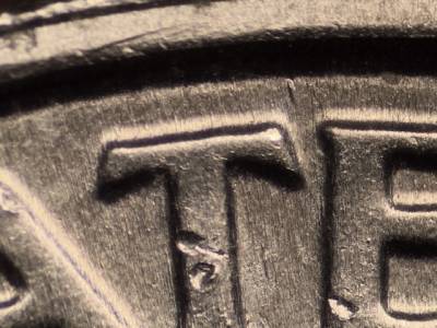 Obverse: Die chips on the cheek, the nose, the eyebrow, and in the hair. Die gouge to the right of the Y in LIBERTY. Two die gouges between the 1 in the date and the mintmark. Two die gouges below the ST in TRUST.