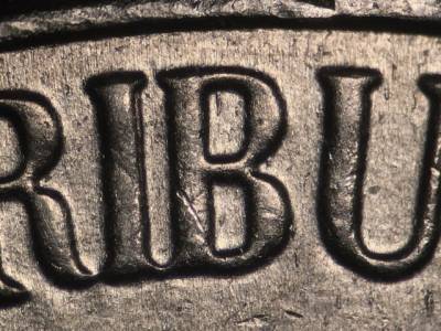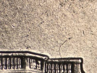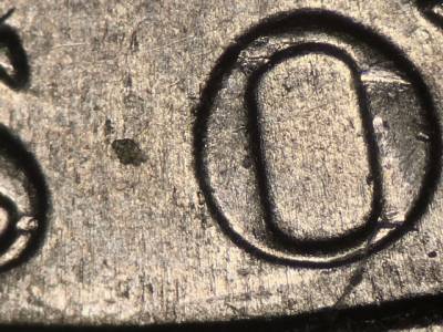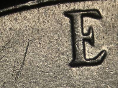 Reverse: Many small die gouges to the left of the E in E PLURIBUS UNUM. Die gouge inside the upper opening of the B in PLURIBUS. Die gouge between the top of the tall right window and the column to the left of it. Multiple die gouges above the right side of the building. Die gouge below the left side of the M in MONTICELLO. Die gouge to the left of the O in OF.