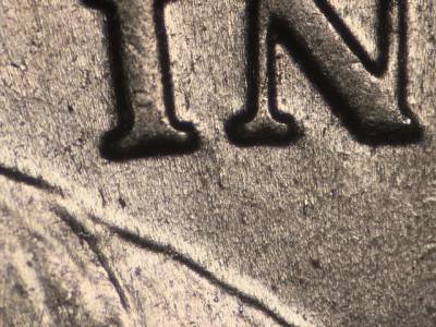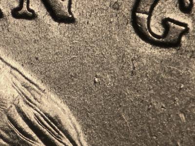 Obverse: Die gouge below IN. Die gouge far between the G in GOD and the hair. Die gouge between the 2 in the date and LIBERTY. Large die gouge on the left side of the chin.