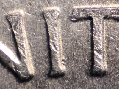 Obverse: Stage A: Die gouge between the E and R in AMERICA. Stage B: Stage A marker still present. Two die gouges between the I and T in UNITED. Two die gouges inside the upper right of the O in DOLLAR. Die gouge to the right of the first L in DOLLAR. A die crack runs along the base of the bust with a die chip above the E in QUARTER.