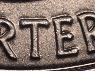 Strong extra thickness on IGWT, LIBERTY, QUARTER DOLLAR, UNITED STATES OF AMERICA, and the mintmark. Strong notching and separation on IGWT, QUARTER DOLLAR, and the mintmark.