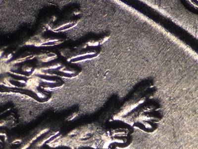 Reverse: Die gouges between the branches below the KS in ROCKS.