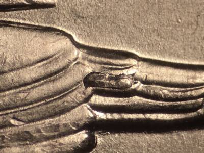 Obverse: Stage A: None known. Stage B: Die gouge in front of the tip of the bust. Die gouges northwest and east of the R in DOLLAR. Die gouges in the field and in the hair left of the G in GOD. Die gouge between the C and A in AMERICA. Numerous die gouges in the upper hair. Die gouge inside the D in UNITED. Die gouge below the E in UNITED. Die gouge touches the top right of the N in UNITED.