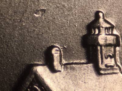 Reverse: Stage A: Die break on the top of the heron. Stage B: New die break on the tail feathers. Die gouge below the S in ISLAND. Three die gouges in the field below the beak. Die gouge above the building.