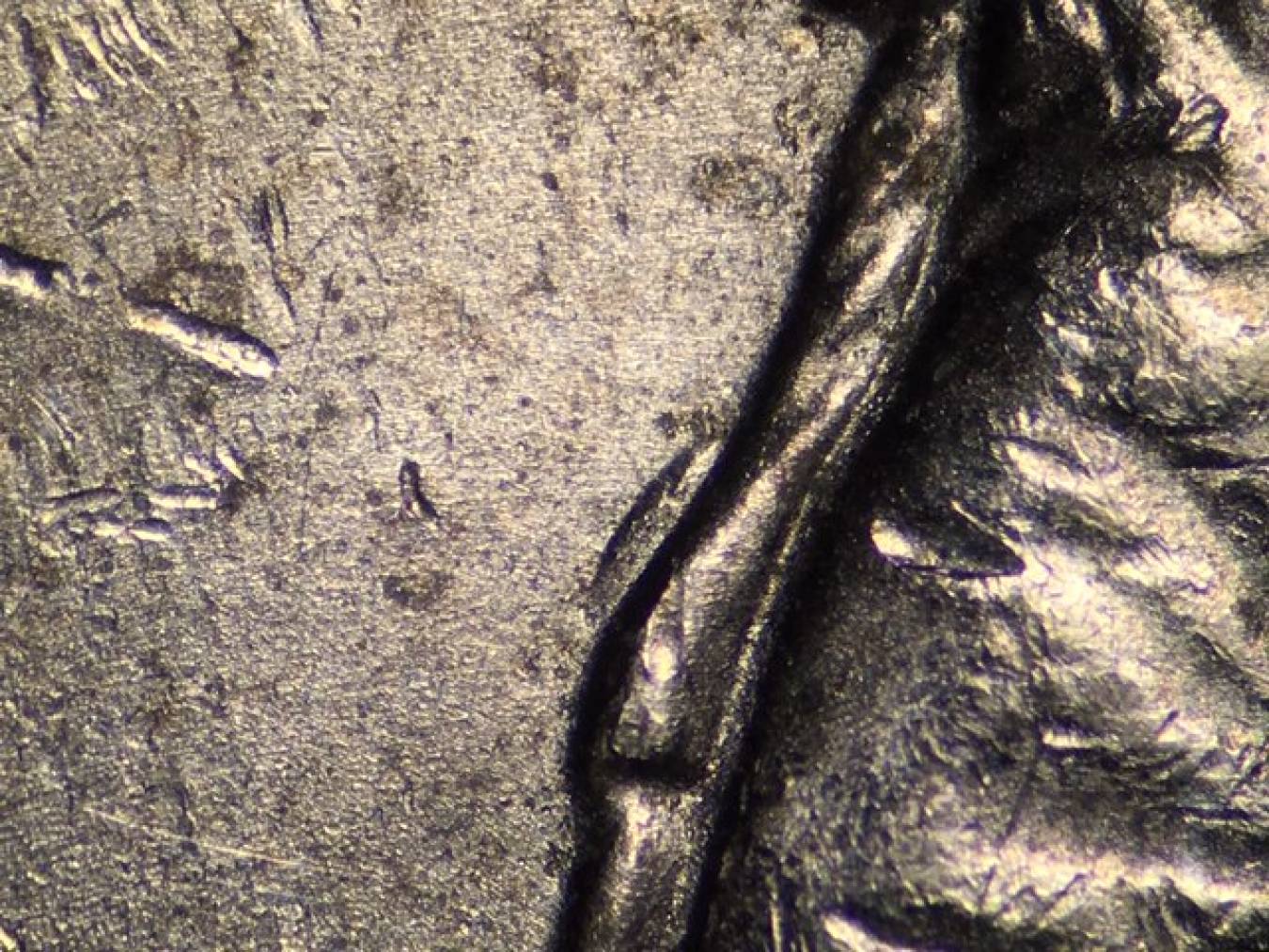Obverse: Stage A: Die gouge below the B in LIBERTY. Die trails extend SW and NE from the T in UNITED. Stage B: Stage A markers no longer present. Moderate to heavy die flow. Die chips formed to the left of the designers initials JF.