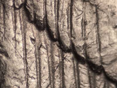 Doubling to the northwest of one of the anhinga feathers.