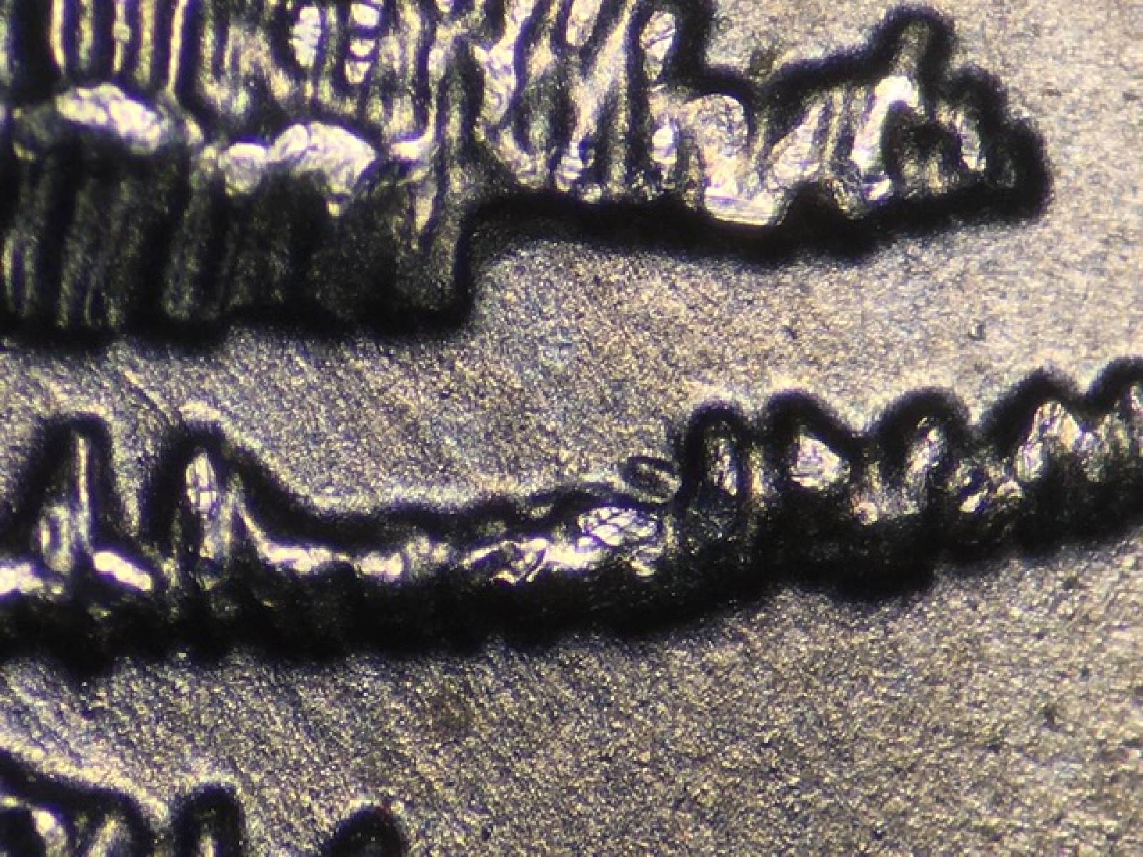 | SDDR-002 | Strong spread to the northwest above the right side of the second grass strip. Cross-References: WDDR-033 Die Markers: Obverse: Stage A: E-W die scratch above the T in QUARTER. Stage B: WDDR-033. It is not known whether or not Stage A markers are still present. Two die chips above the designers initials JF. Reverse: Stage A: None known. Stage B: WDDR-033. Die chip in and below the eye of the great blue heron. | |