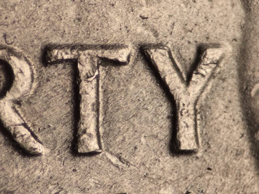 | SDDO-001 | Extra thickness with strong notching on the lower right corners of IGWT. Lesser extra thickness on LIBERTY and the mintmark P. Die Markers: Obverse: Two die gouges between the Y in LIBERTY and the throat. Reverse: None known. | |