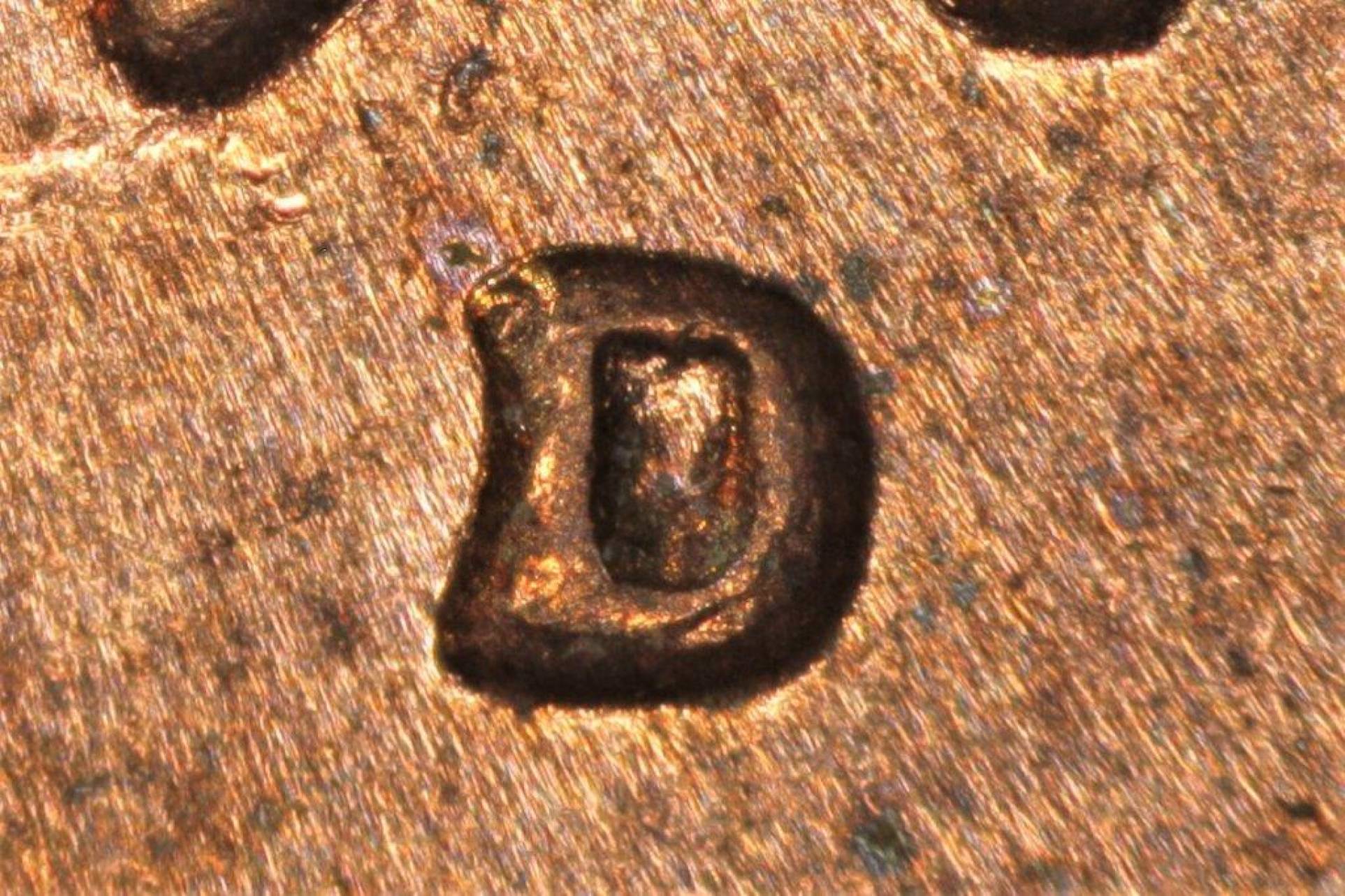 | Damaged Mintmark Punch | Strong doubling of the horizontal line on the upper mint mark as well as split upper and lower serifs are the result of a damaged mintmark punch. It is not a RPM. All examples of the damaged punch show the doubled horizontal line. | |