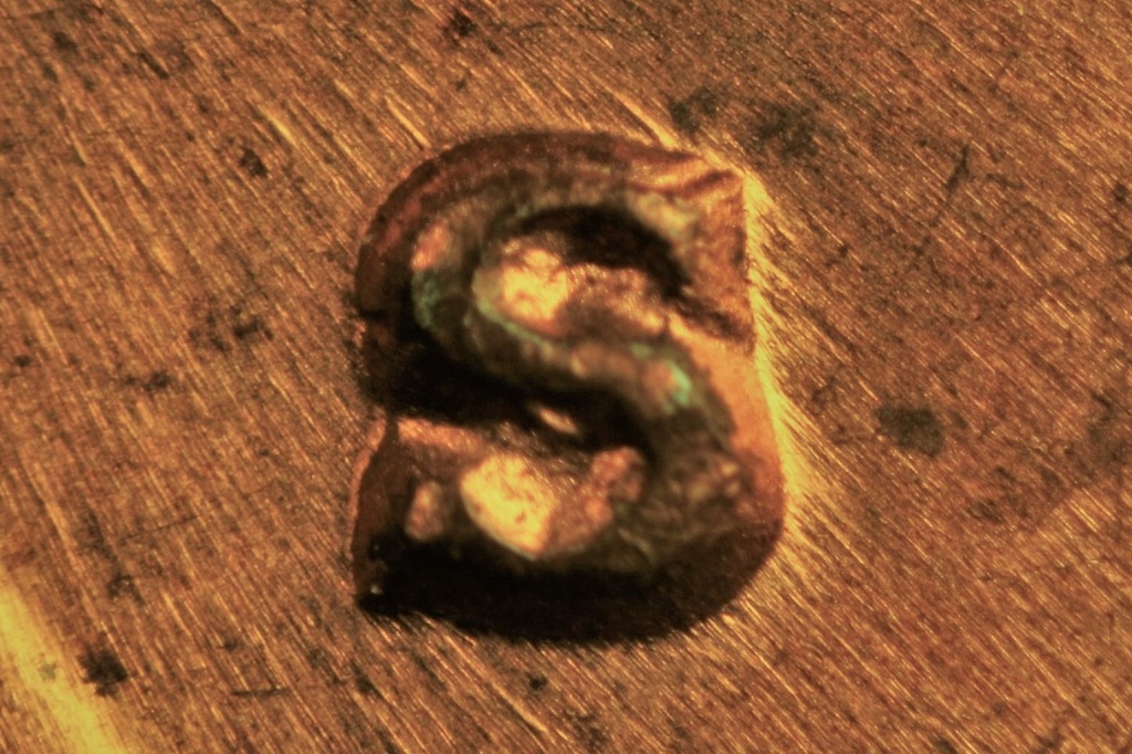 | Damaged Mintmark Punch | Apparent doubling as a split upper serif with doubled upper loop resembling an RPM. This is due to a damaged punch and not a true RPM. Further information can be found in Will Brooks' Coin World article (November, 2018 with photos by Ray Parkhurst) entitled “Defective punches for Mint marks can deceive collectors” as well as at Variety Vista. Both the original 1974-S WRPM-001 and WRPM-002 listings were found to be the damaged punch. | |