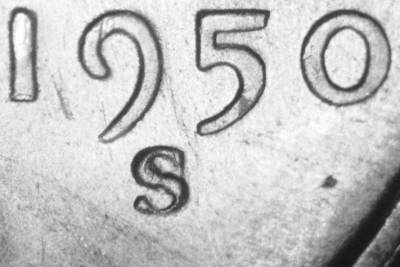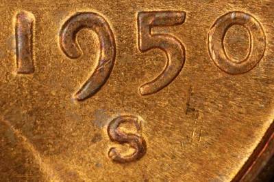 | WRPM-018 | S/S East Comments: 1950-S WRPM-048 was discovered to be a stage of WRPM-18 and has been added to this listing. Die Markers: Obverse: Stage A: A strong series of die gouges show at the rim right of the last T in TRUST at approximately K-2:30. An additional die gouge shows at the rim at K-3:00 (These die gouges show in all known die stages). Faded die scratches run North from the RTY in LIBERTY with a stronger one emanating from the upper right side of the T in LIBERTY. A NW-SE die scratch shows on the lower bust to the left of the B in VDB. Light concentric die scratches show at the back of the lips and on the beard. A WSW-ESE die scratch shows on the upper cheek, SE of the eyelid. Stage B: The die gouges at K-2:30 and K-3:00 are present, but weaker (These die gouges show in all known die stages). A short die gouge runs South from the lower margin of the shoulder, just left from the V in VDB. Stage C: The die gouges at K-2:30 and K-3:00 are present, but weaker (These die gouges show in all known die stages). Two very strong SW-NE die scratches run through the R in TRUST. The Stage B, short die gouge that runs South from the lower margin of the shoulder, just left from the V in VDB is present and stronger. Fine concentric die scratches show at the rim above IN GOD WE T. A short SSW-NNE die crack shows in the upper hair below WE. A short die gouge runs SW from the lower left side of the W in WE. Reverse: Stage A: Two parallel, but widely spaced N-S die scratches run through the O in OF and to the left of the first A in AMERICA. These die scratches continue South to the lower left wheat stem. Very light die scratches run North from the upper left side of the N in UNITED. A long N-S die scratch runs South from between the M & E in AMERICA. A long die scratch runs North from the upper right side of the last A in AMERICA. Several short die scratches run North from the lower right wheat stem. A well-hidden die dot shows on the lower left wheat stalk SW of the U in UNITED and between the third and fourth kernels from the bottom (This marker is present in Stages A & B). Stage B: A strong die gouge (dot) shows above the upper central margin of the vertical crossbar of the T in CENT. The previously mentioned Stage A die dot between kernels three and four is still present. A tiny die gouge shows along the upper right margin of the right wheat tassels. Stage C: New reverse die. Numerous N-S die scratches show throughout most of the reverse. Some notable ones include a strong scratch inside the E in ONE and a distinctive die scratch pattern through the UNI of UNITED and OF. | |