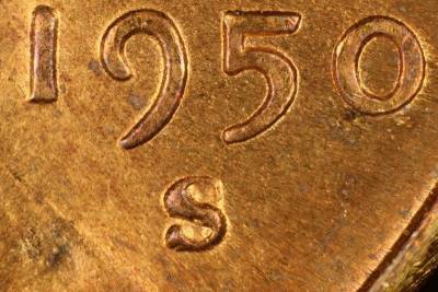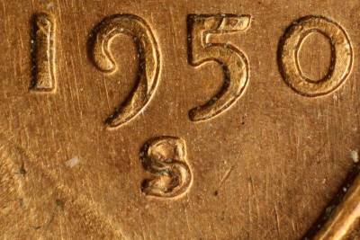 | WRPM-022 | S/S Northeast Cross-References: CONECA: RPM #8, Coppercoins: 1950S-1MM-008 Die Markers: Obverse: Two die scratches show North of the date and East of the chin. A light N-S die scratch shows along the right side of the R in LIBERTY. A similar light die scratch runs South from the lower right side of the horizontal crossbar of the T in LIBERTY. A grouping of die gouges (dots) show at the back of Lincoln’s lower hair. A group of three die gouges (dots) show below and SE of Lincoln’s eye. Reverse: Two parallel die scratches run N-S through the N in UNITED and the O in OF. | |