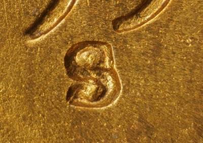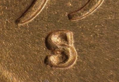 | WRPM-035 | S/S Tilted (Rotated) Die Markers: Obverse: A die scratch runs SSE from the middle right side of the 9 in the date. A die gouge (dot) shows near the top of the lower opening of the 5 in the date. Some light die scratches run NNW-SSE between the 1 and 9 in the date. Numerous N-S die scratches show between the upper forehead and the front hair curl. Two parallel die scratches connect the bridge of the nose to the eyebrow. A similar die scratch runs NNW very closely to the front of the forehead to the upper hair curl. A strong series of die scratches run South from below the ear and lower beard. Strong N-S die scratches show on the beard to the East of the lower ear. A strong N-S die scratch runs North from between the T & Y in LIBERTY. Several die scratches run South or SSE through the lower areas of the ER in LIBERTY. Three parallel die scratches run SSE from below the right side of the R in TRUST. A single die scratch parallel to the last ones runs from the lower U in TRUST. A distinctive series of mostly N-S die scratches show on and above the upper hair below GOD. Some light N-S die scratches show inside the temple area. Reverse: A die gouge (dot) shows on the left outer side of the U in UNITED about a third of the way up. A tiny die dot shows almost equally between the lower U and N of UNITED. A tiny die dot shows just to the left of the lower L in PLURIBUS. A die dot shows to the right of the lower curve of the C in CENT. A slightly larger die dot shows NNE of the previously mentioned die dot. | |