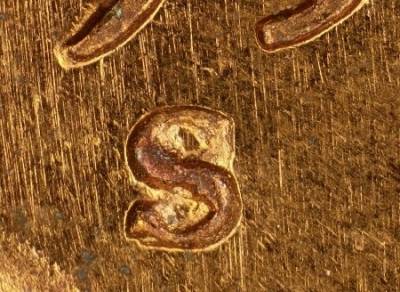 | WRPM-019 | S/S/S West and West Die Markers: Obverse: Stage A: A concentric die gouge shows along the rim from K-9:30 clockwise to between the N of IN and the G in GOD. A strong series of die scratches run North from the T in LIBERTY. A strong die dot shows NE of the upper I in IN. Die damage shows at the rim SW of the last T in TRUST at approximately K-2:00. A grouping of N-S die scratches shows on the neck, NW of the bow tie (These die scratches are present in all known die stages). Two short, but strong die gouges run SE from below the lower central chin area. A long, but faded group of die scratches run North form the 19 in the date and end in the field just below nose level. Stage B: The Stage A die damage at the rim SW of the last T in TRUST at approximately K-2:00 is present, but weak. The Stage A concentric die gouge along the rim from K-9:30 clockwise to between the N of IN and the G in GOD is present and strong. The Stage A die scratches running North from the T in LIBERTY are still visible. The Stage A die dot NE of the I in IN is much weaker. Stage C: Most Stage A and B markers are still present. A die clash line shows at the throat above the bowtie. Stage D: The Stage A-C die scratches on the neck and North from the T in LIBERTY are still present. The die clash at the neck has been heavily abraded leaving numerous N-S die scratches. A fresh series of N-S die scratches connect the lower nose with the upper chin. Stage E: The Stage A-C die scratches North from the T in LIBERTY have been reduced to two long parallel scratches. The die scratches on the neck NW of the bowtie are still present. The die damage at the rim below the last T in TRUST is completely missing. The N-S die abrasion marks at the neck are present but weaker. Reverse: Stage A: A strong series of die scratches run N-S though the E in ONE. Two short die scratches run North from the upper left side of the horizontal crossbar in the T in CENT (Visible in all known die stages). A short die scratch runs North from the upper left side of the O in OF. Light N-S die scratches show through and below the AMER in AMERICA. A strong die scratch runs South from the lower left corner of the E in STATES to the right side of the last A in AMERICA. A small die gouge (dot) shows along the upper left margin of the U in UNITED. Stage B: Most Stage A die markers are present but weaker. A new die scratch runs North from the apex of the O in ONE. Stage C: Most Stage A and B markers are still present. Evidence of a die clash shows inside the lower right opening of the C in CENT. Stage D: Nearly all of the Stage A-C markers are worn away. The light die scratches running North from the upper left side of horizontal crossbar of the T in CENT are still present. A light N-S die scratch shows between the E and R in AMERICA. The short die scratch running North from the upper left side of the O in OF is barely visible. Stage E: The die scratch running North from the apex of the O in ONE and the Two short die scratches that run North from the upper left side of the horizontal crossbar in the T in CENT are the only markers that remain. A fresh die dot shows above the right tip of the lower horizontal crossbar of the E in STATES. | |