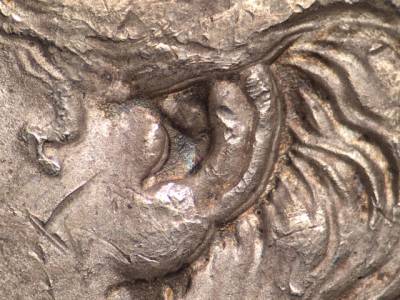 Strong die clash marks on the obverse.