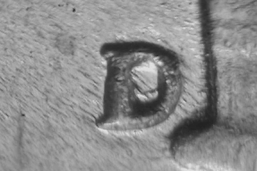 | WRPM-023 | D/D South Die Markers: Obverse: Doubling on the designer’s initials. N by E/S by W die scratch on the center of the nose. Short curving, NW/SE die gouge on the nostril. Short N/S die gouge right of the nostril. Reverse: Two die scratches south from the lower left of the torch holder. |   |