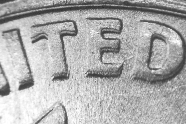 | WRPM-009 | S/S Southeast Cross References: CONECA: RPM #9 Die Markers: Obverse: Type I, WWHO-001. Die crack south from the throat above the last T in TRUST. N/S die scratch through the eyelid. Reverse: Trumpet tail mintmark, WWHR-001. A spread toward the center shows on AMERICA, DIME, UNUM and weak on DIME. ENE/WSW die scratch through the UNI of UNITED. Die gouge below the left leg of the R in AMERICA. |   |