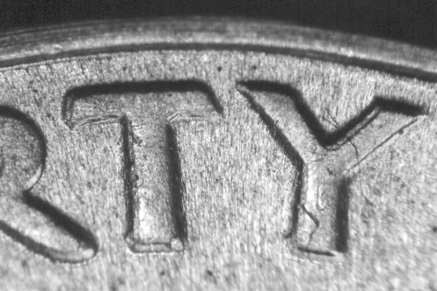 | WRPM-016 | S/S Tilted (Rotated) Die Markers: Obverse: WWHO-001. N/S die scratch at the lower right side of the L in LIBERTY. Reverse: Knob Tail Mintmark. Die scratch south from the lower right side of the second U in PLURIBUS. Die scratch NNE/SSW between the dot and the first U in UNUM. |   |