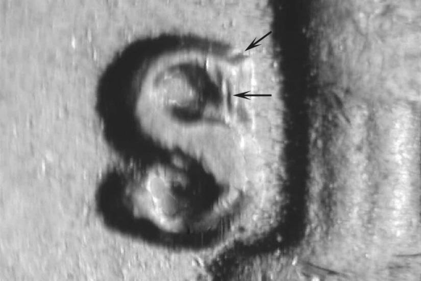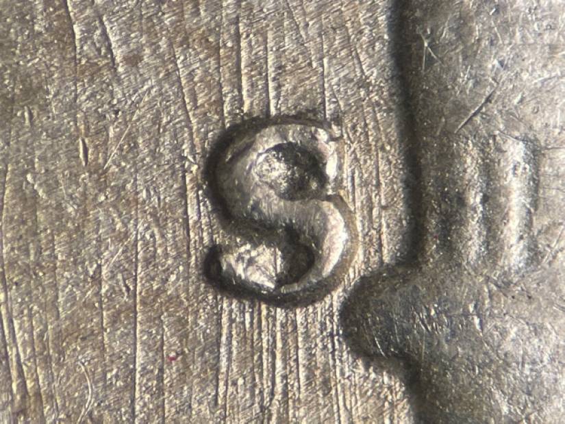 | WRPM-006 | S/S East Die Markers: Obverse: Short die scratch north from the lower area of the forehead. N by E/S by W die scratch inside the ear at left center. Reverse: N/S die scratches at the last U in PLURIBUS. | |