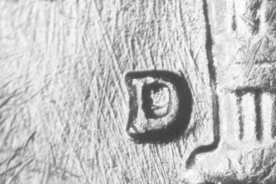 Obverse: Stage A: Die scratch south from left center of the 9 in the date. Die scratches south from the designer’s initials. Stage B: Very weak stage A scratches remain.