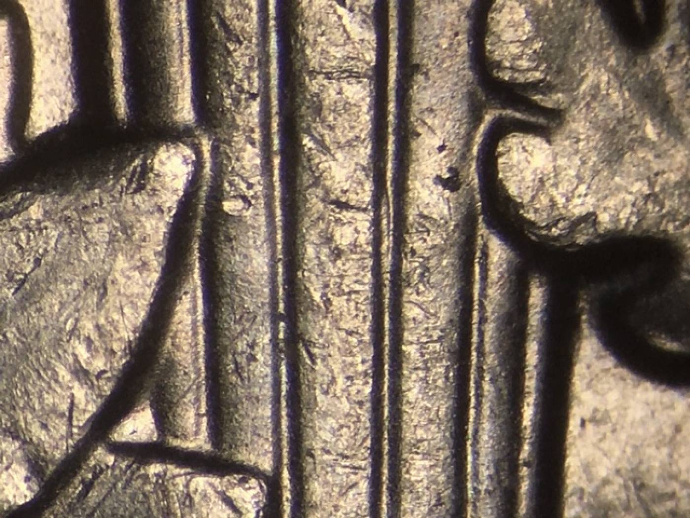 | SDDR-003 | Slight doubling in the fluting to the right of the olive leaves overlapping the torch. Die Markers: Obverse: Large die chip on the back of the lips. Die chips on the cheek. Large die chip with die crack on the eyebrow. Die gouge above the 1 in the date. Reverse: Many die cracks and chips on the bottom of the torch. Die chip on the top left of the torch. Many die chips on the upper olive leaves. Die chip on the oak stem between the U and N in UNUM. Die gouge between the O and N in ONE. Die gouges above the N in ONE. | |
