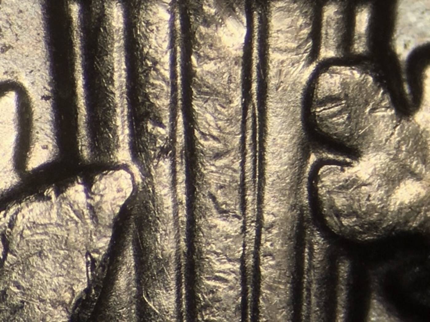 | SDDR-006 | Doubling to the east on the middle olive leaf overlapping the torch. Die Markers: Obverse: Die chips on the lower lip, the back of the lips, the cheek, the eyebrow, and throughout the hair. Reverse: Many die cracks and chips on the bottom of the torch. Unusual die damage between the U and N in UNITED. | |