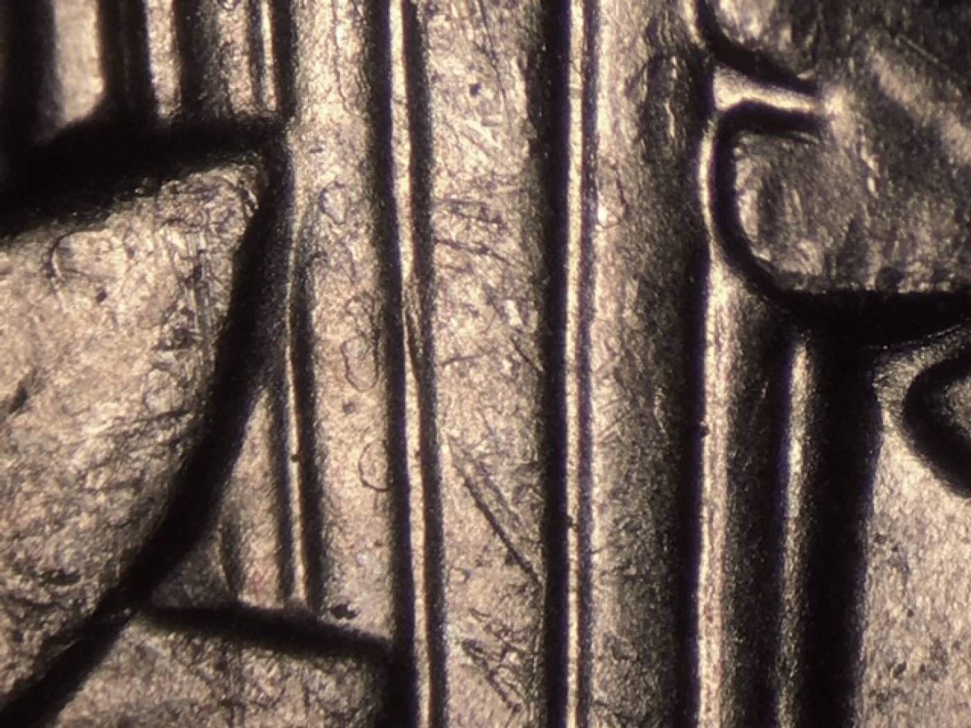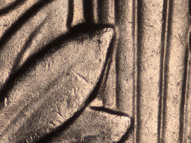 | SDDR-011 | Slight doubling in the fluting to the right of the olive leaves overlapping the torch. Die Markers: Obverse: Die chips on the back of the lips, the nose, the eyebrow, and the hair. Reverse: Many die cracks on the bottom of the torch. Die scratch near the rim above the first S in STATES. Light die scratches through the upper olive leaves. | |